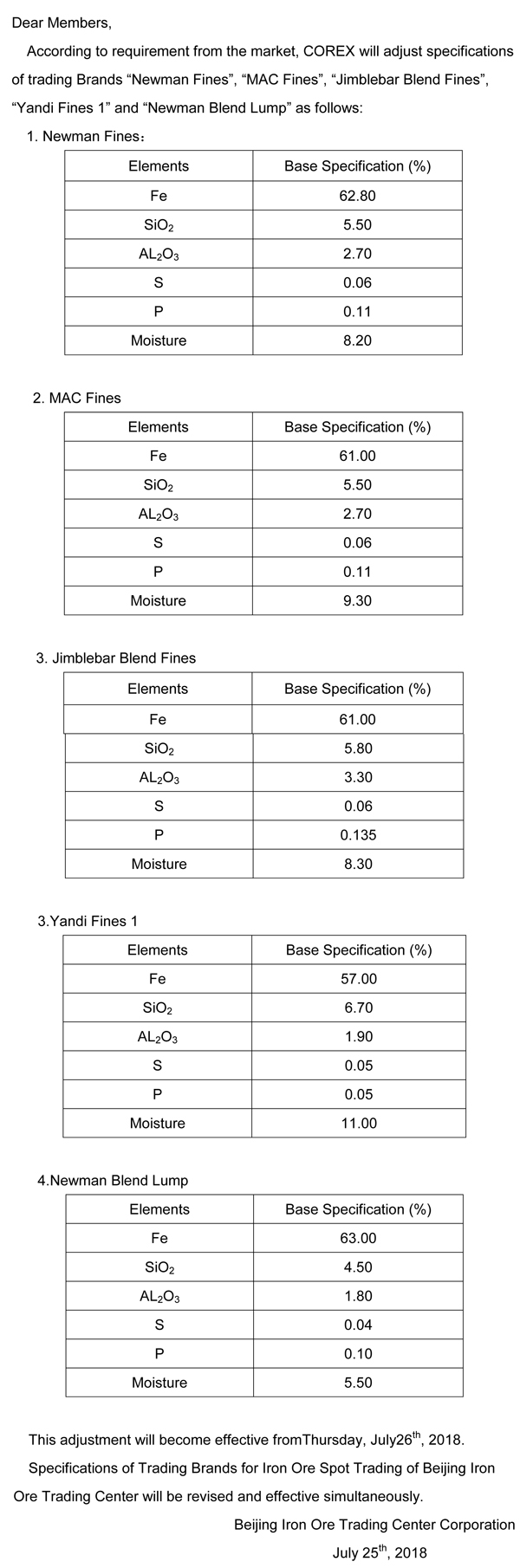 Announcement on Upgrading COREX Electronic Trading System